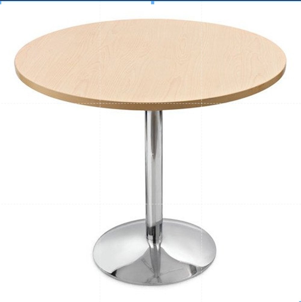 Metal Chrome plated round shape base single rod support from center round shape ply wood top 30 inches height restaurant and cafeteria table manufacturer and designer