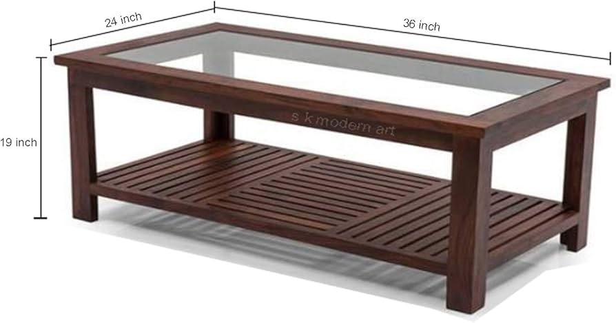 Teak wood brown color polished body rectangular shape glass on top with open down storage 3'L x 1.5'W designer home and hotel wooden center table manufacturer and designer