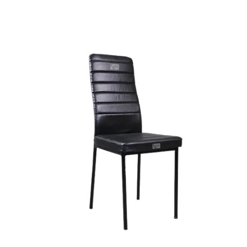 metal powder coated black color frame cushion PU leather black color seat high lining back armless dining chair