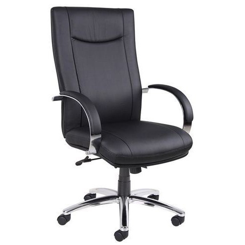 ply wood frame cushion black color PU Leather seat high back fixed round shape steel handles with PU pad plain seat adjustable height chrome plated 5 wheels base revolving executive boss chair manufacturer and designer