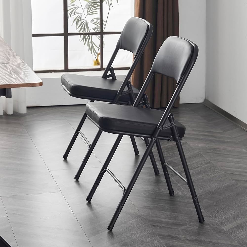metal powder coated black color frame cushion rexine black color ply woos seat with footrest 4 legs medium half back arm less designer home and garden folding chair