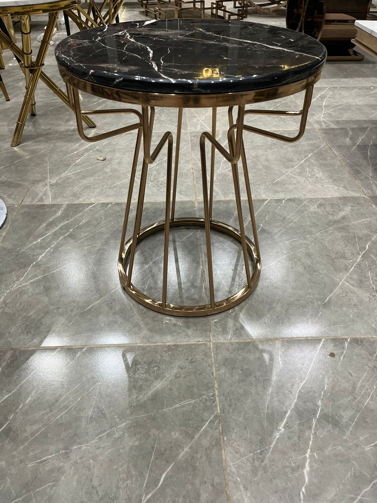 Stainless steel frame with rose gold finish round shape black color marble on top designer home and hotel center coffee table
