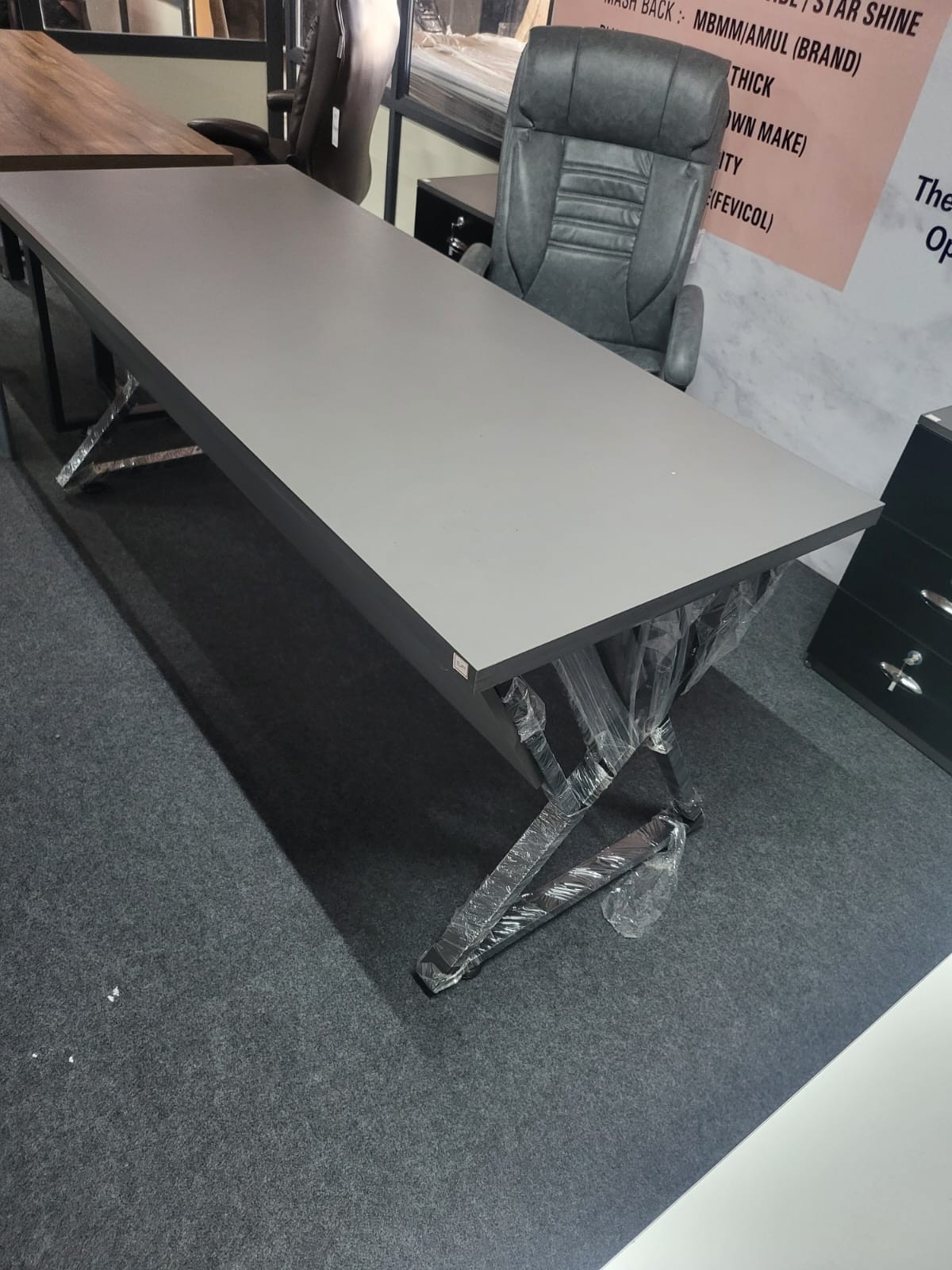Metal powder coated black color legs wooden rectangular shape top 5'L x 3'W x 2.5'H designer grey color manager office designer Table
