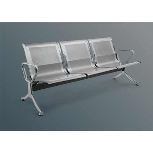 Chrome plated body 3 seater 6 feet x 2 feet medium back fixed armrest comfortable seat office, hospital, airport and garden 3 seater visitor sofa manufacturer and designer