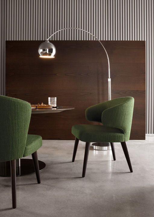 Teak wood frame body cushion fabric seat green color medium back curve armrest wooden 4 legs designer home, hotel and restaurant dining chair manufacturer and designer