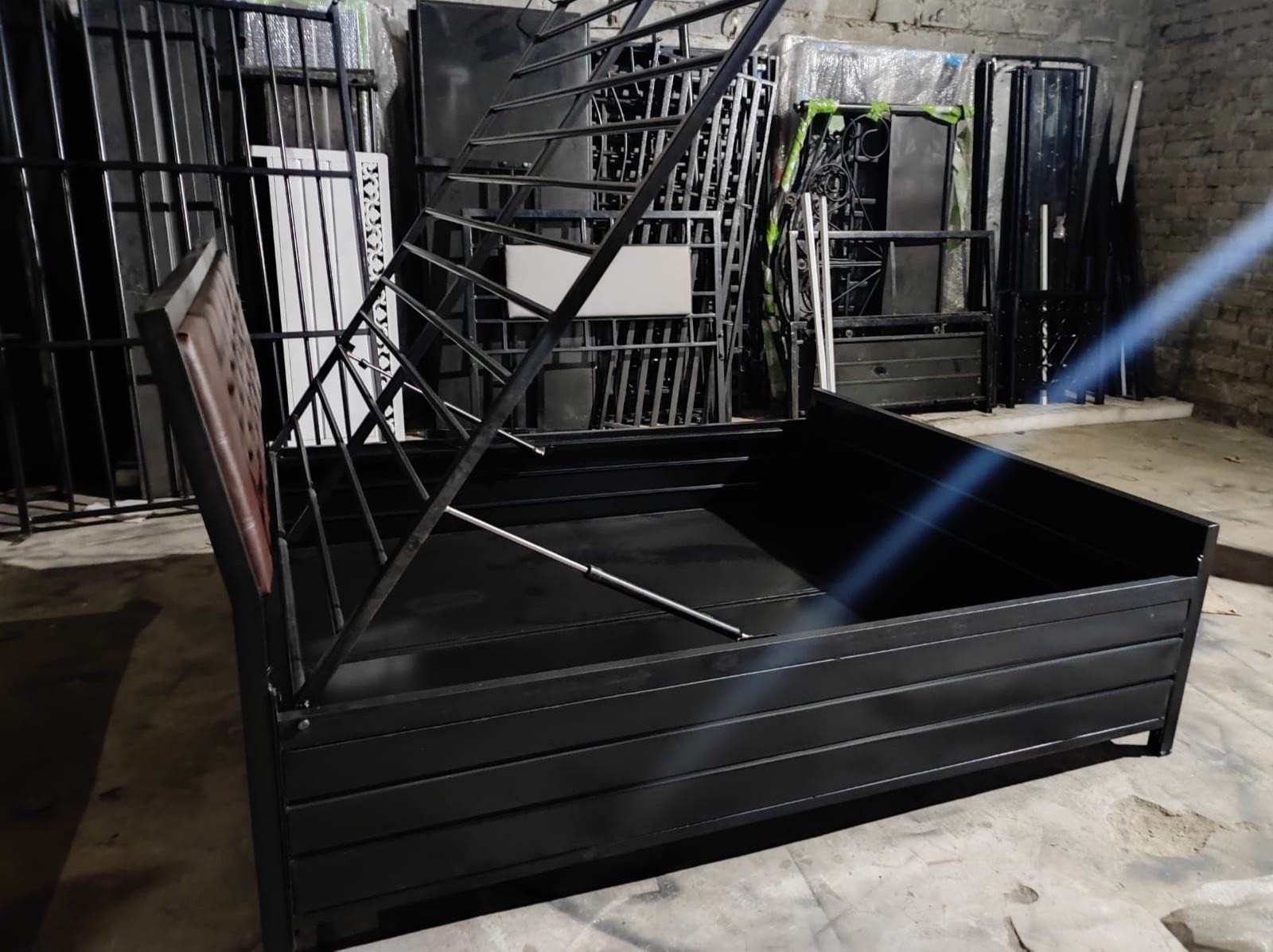 metal powder coated black color ply wood in down side designer diamond brown leather back 6'L x 2.5'W home and hostel designer single size bed without mattress