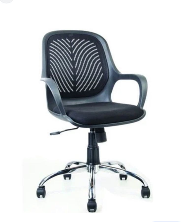 Low back black color fix handle to back cushion black color fabric seat adjustable height revolving chrome plated 5 wheels base office staff and conference room chair manufacturer and designer