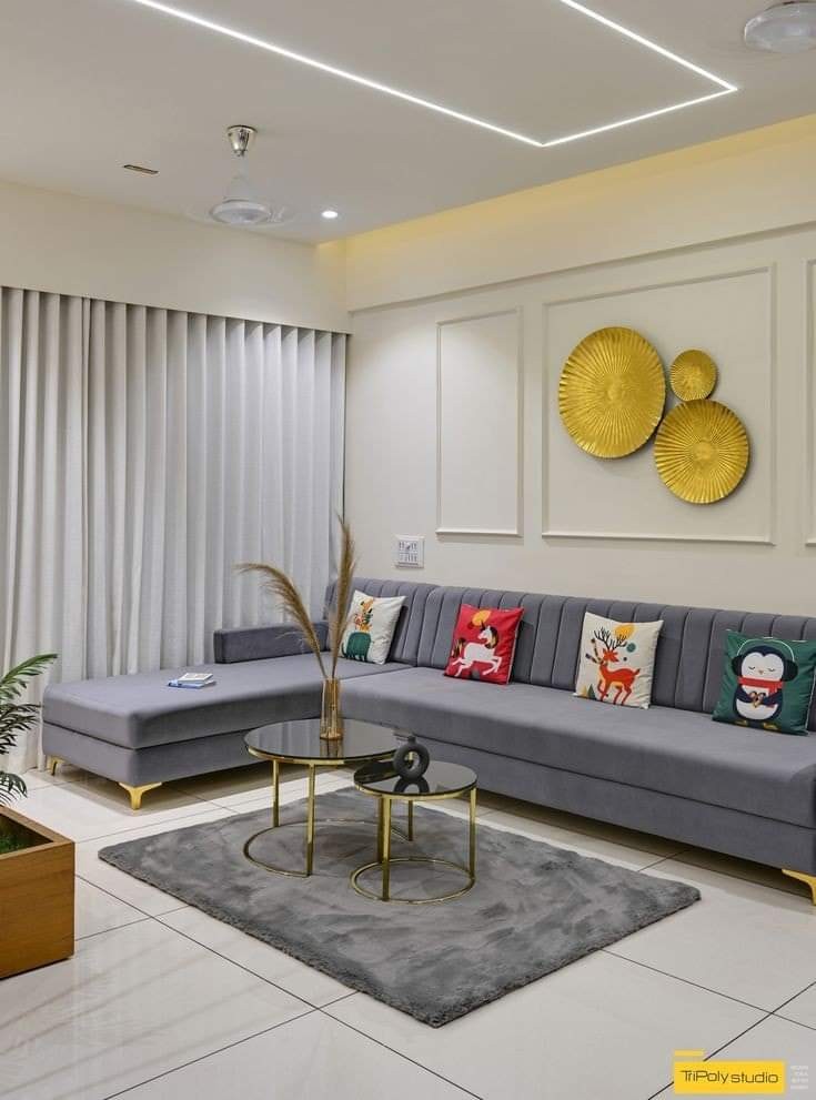 Wooden frame golden finish powder coated legs grey color velvet seat L shape 7 seater designer back home and hotel corner L shape living room sofa manufacturer and designer