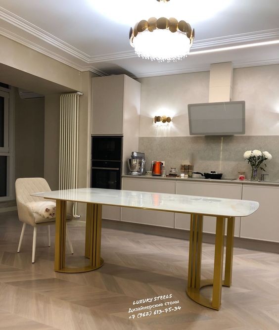 metal designer base with PVD gold finish available white color designer 5'L x 3'W x 2.5'H marble on top 6 seater rectangular shape home, hotel and restaurant designer marble top 6 seater dining table manufacturer and designer