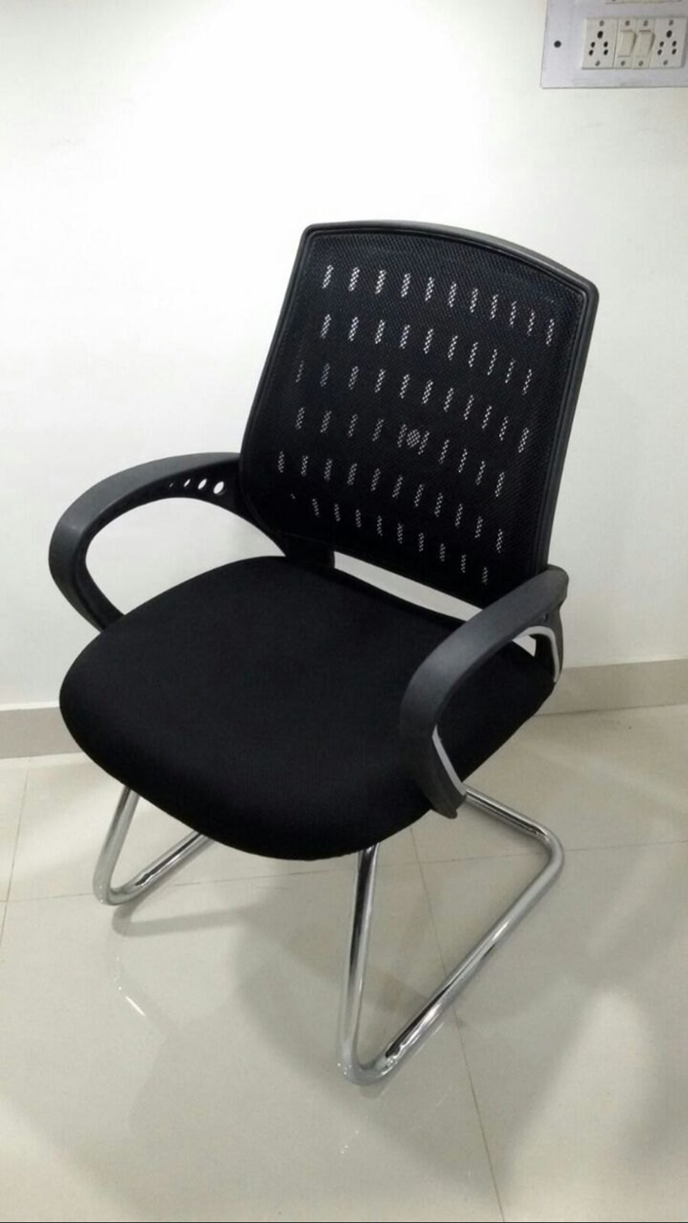low mesh back fixed handles chrome s type base office staff and conference room designer visitor chair