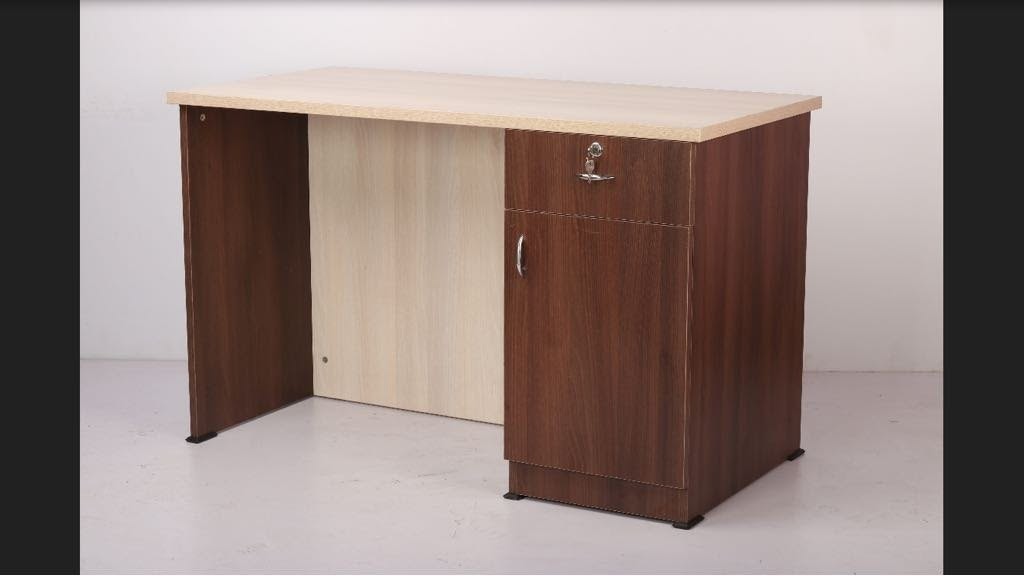 Engineered wood brown and cream color single drawer and single storage key lock rectangular shape with keyboard pad 4'L x 2'W x 2.5'H designer home and office computer table manufacturer and designer