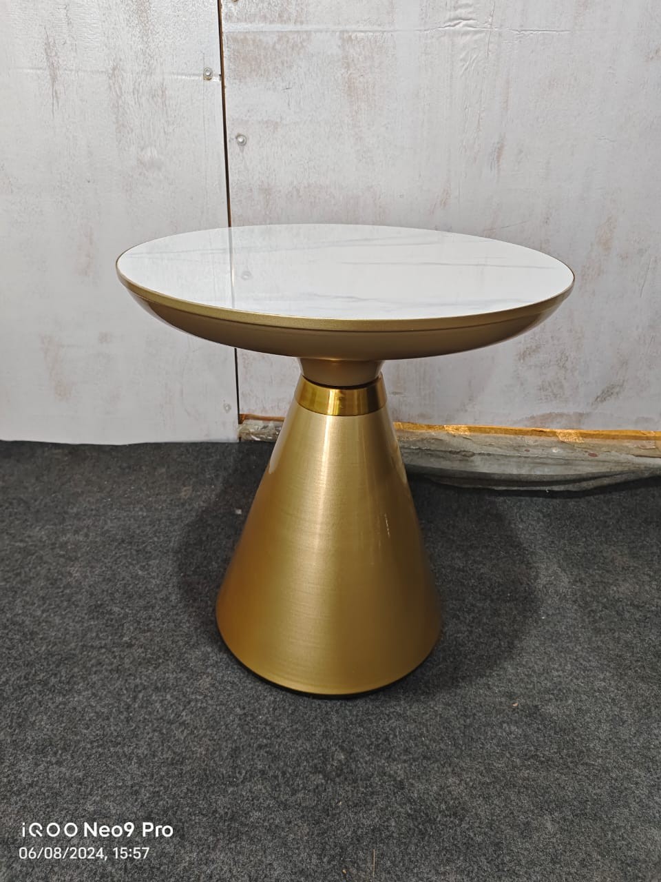 Golden finish round shape base white color onxy round marble on top 2 seater restaurant marble top table manufacturer and designer