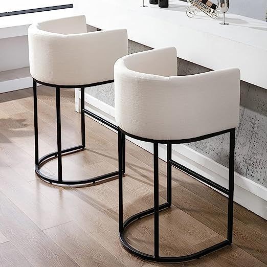 Metal powder coated black color frame round shape low back cushion ivory color fabric seat with black color footrest 32 inch height fix home, hotel, bar, cafeteria and restaurant designer bar stool manufacturer and designer