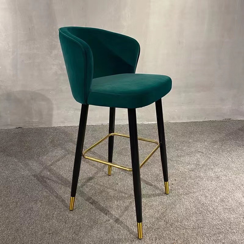 Metal black color black colors legs with rose gold finish footrest and buffers wooden frame cushion green color velvet seat low back arm less 30 inches height revolving seat fix home, hotel, bar and restaurant bar stool manufacturer and designer