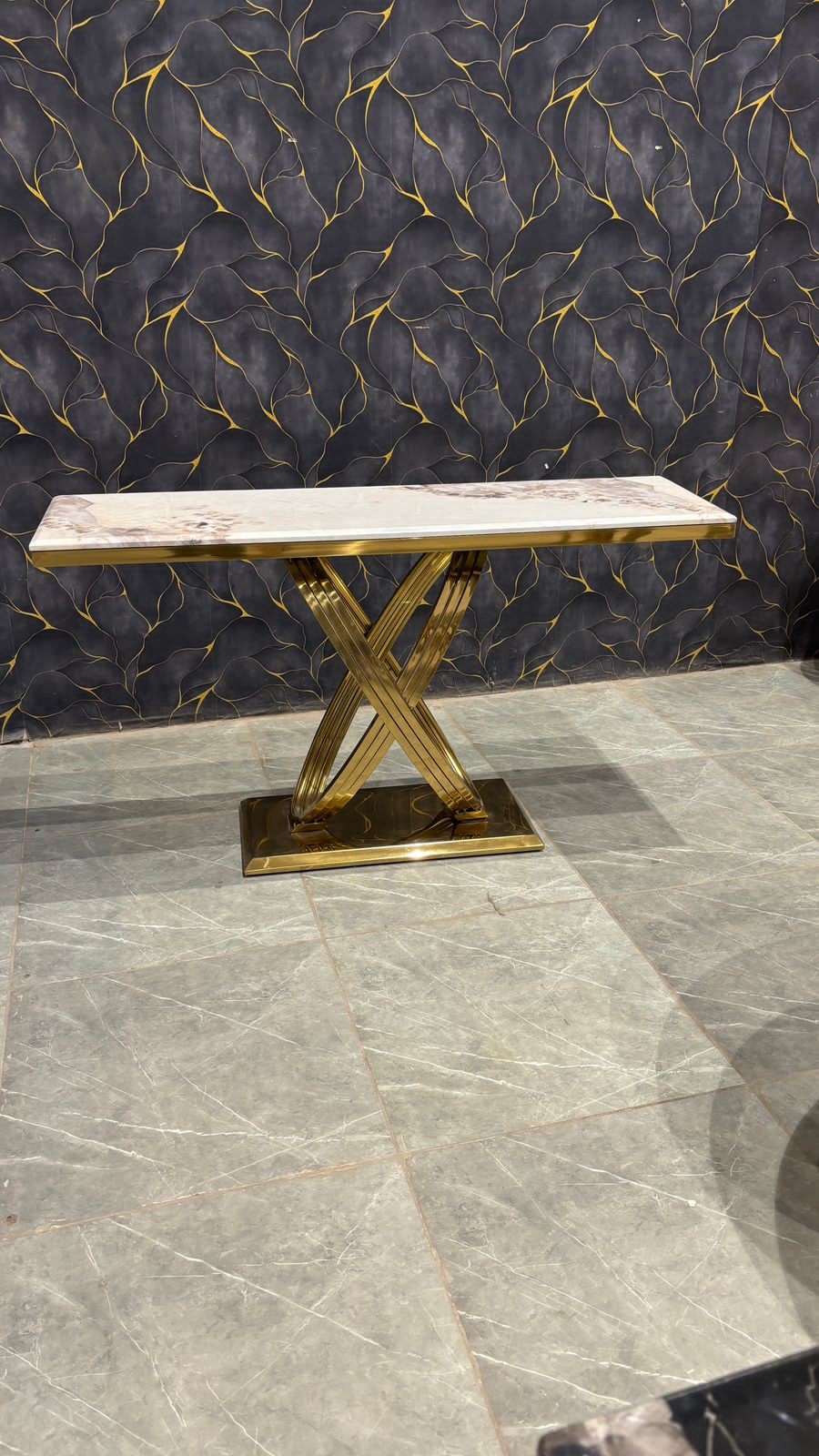 metal powder coated golden finish double cross ring base white color marble on top 5'L x 3'W x 2.5'H Designer home, hotel and restaurant marble top 6 seater dining table