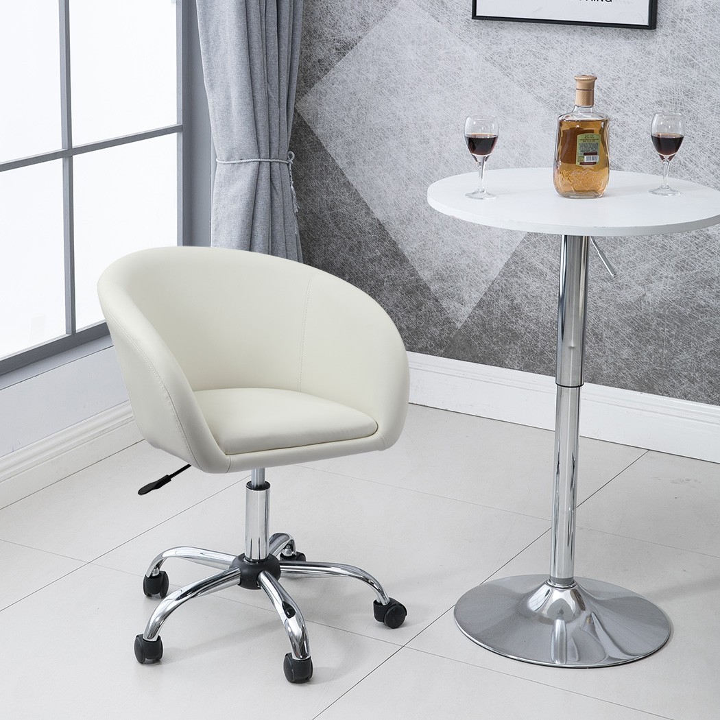 Wooden frame cushion leather white color seat round back armrest designer chrome plated base adjustable height revolving office designer chair