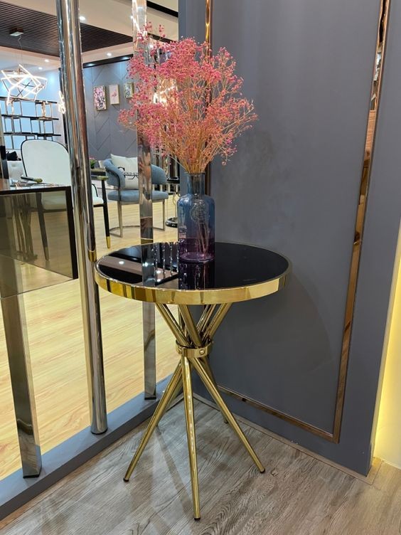 metal frame PVD golden finish black color marble on top 4 legs in designer base round shape home, hotel and restaurant luxury center table and side table manufacturer and designer