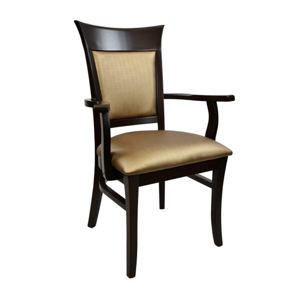 Teak wood brown color polished frame cushion ivory color seat and back fixed handle 4 legs medium back home and office wooden office visitor chair manufacturer and designer