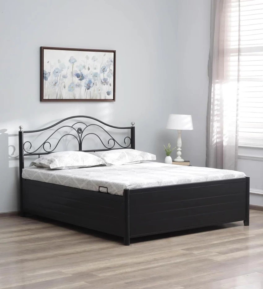 metal powder coated black color hydraulic storage flower design designer back 6'L x 6'W home Full size bed manufacturer and designer