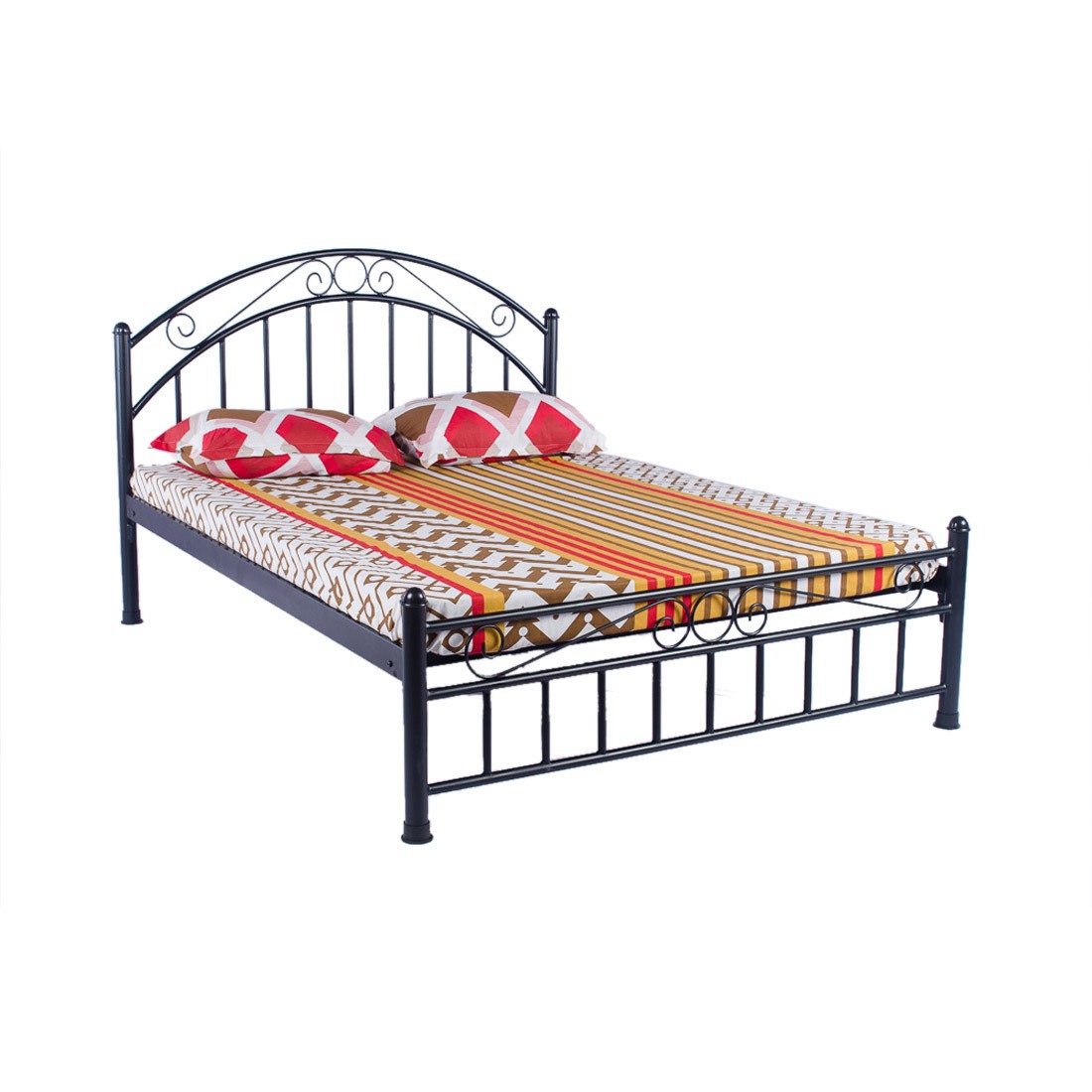 metal powder coated black color frame flowers on back backrest 6'L x 4'W with mattress designer home without storage metal bed