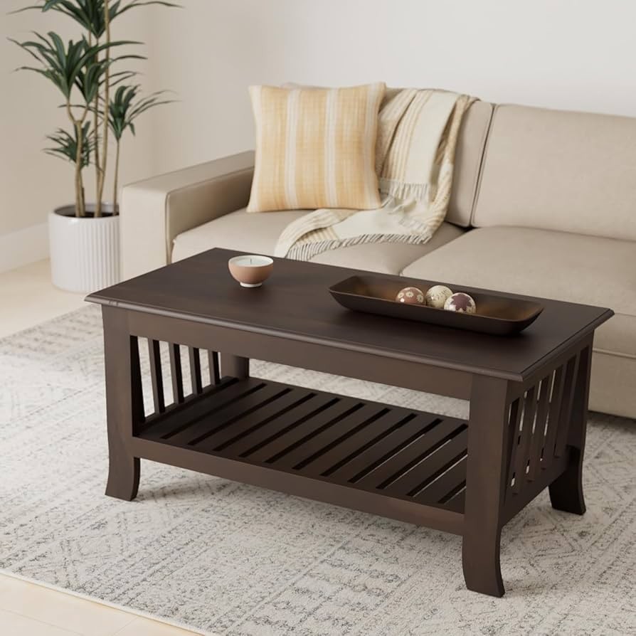Teak wood brown color polished frame 3'L x 1.5'W plain rectangular shape top 4 legs open storage home and hotel designer center coffee table manufacturer and designer