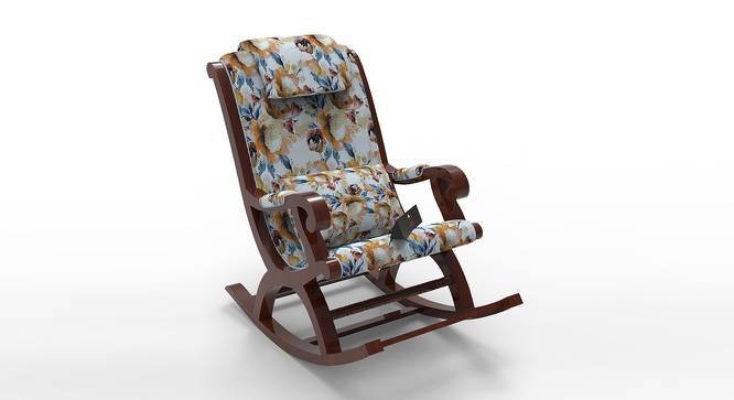 Teak wood brown color polished frame cushion printed fabric seat pillow headrest and pillow backrest designer armrest high back home and hotel rocking chair manufacturer and designer